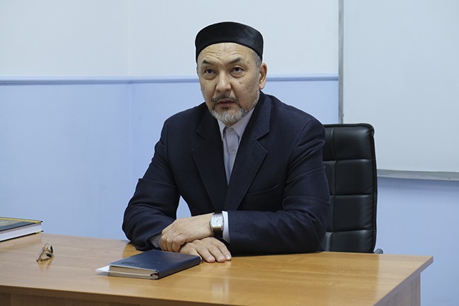 - Біз мұнда имамдарды өте қатаң талаптармен қабылдаймыз. Алдымен тест алып, соның қорытындысы бойынша оларды екі топқа бөлеміз. Жоғары және бастауыш топ. Институттың бұлжымас қағидасы – тәртіп болу керек. Одан кейіне көркем мінезіне қараймыз. Сабақ үйрету, тәлім беру барысында да көпшілікпен тіл табыса алатын, жарқын жүзді, сыпайы, сабырлы дін қызметкерлерін даярлап шығуға күш саламыз. Мұнда «Нұр-Мүбәрәк», ҚазҰУ-дың мамандары, профессорлары келіп дәріс береді. Бастапқыда бір жолғы келушілер төрт ай бойы осында жатып білім алатын. 2013 жылы мен басшылыққа келгеннен кейін бас мүфти Ержан қажы Малғажыұлына өтініш жасап, 2 айға қысқарттым. Себебі имамдардың 4 ай бойы отбасынан жырақтап кетіп қалуы қиынға соғады. Біз қазір имамдарға дәстүрлі ислам құндылықтарын одан әрі насихаттап, санасына сіңіріп жатырмыз. Олардың шариғаттық білімін жетілдіріп, кез келген сыртқы күшке лайықты төтеп беріп, халықтың қамын жей алатын, дін мен дәстүрді қатар алып жүре алатын мамандар қылып дайындауға тырысып жатқан жайымыз бар.